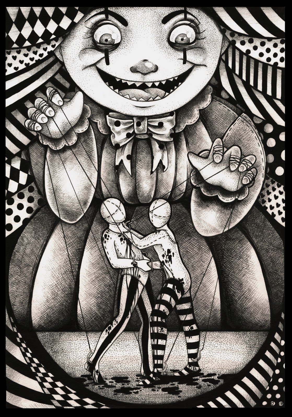 Det här var en skoluppgift som vi gjorde förra året. Det handlade om ljus och skugga, fast vi skulle rita i skräcktema. Just de här tre har jag inte kvar, det var någon som stal dem när vi hade utställning i skolan. Jag vart verkligen jätte ledsen för det ligger så himla mycket jobb bakom dem.